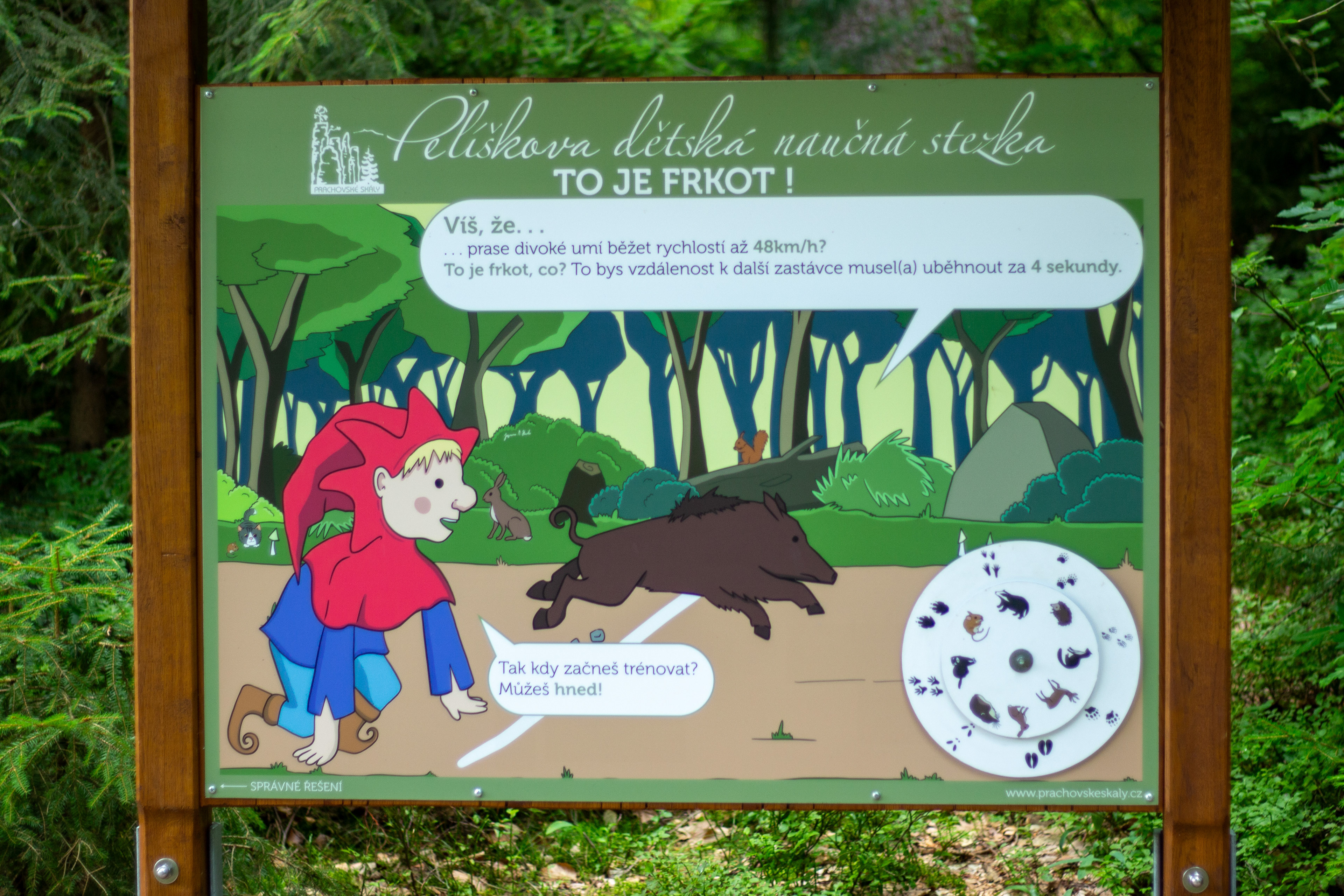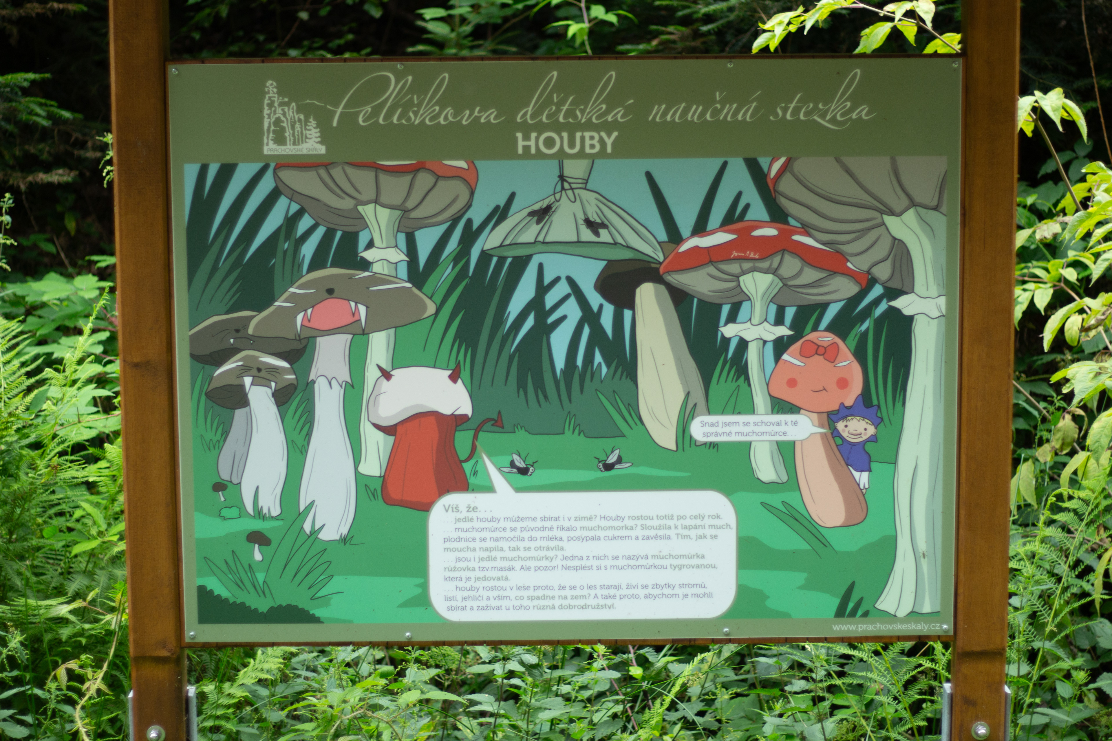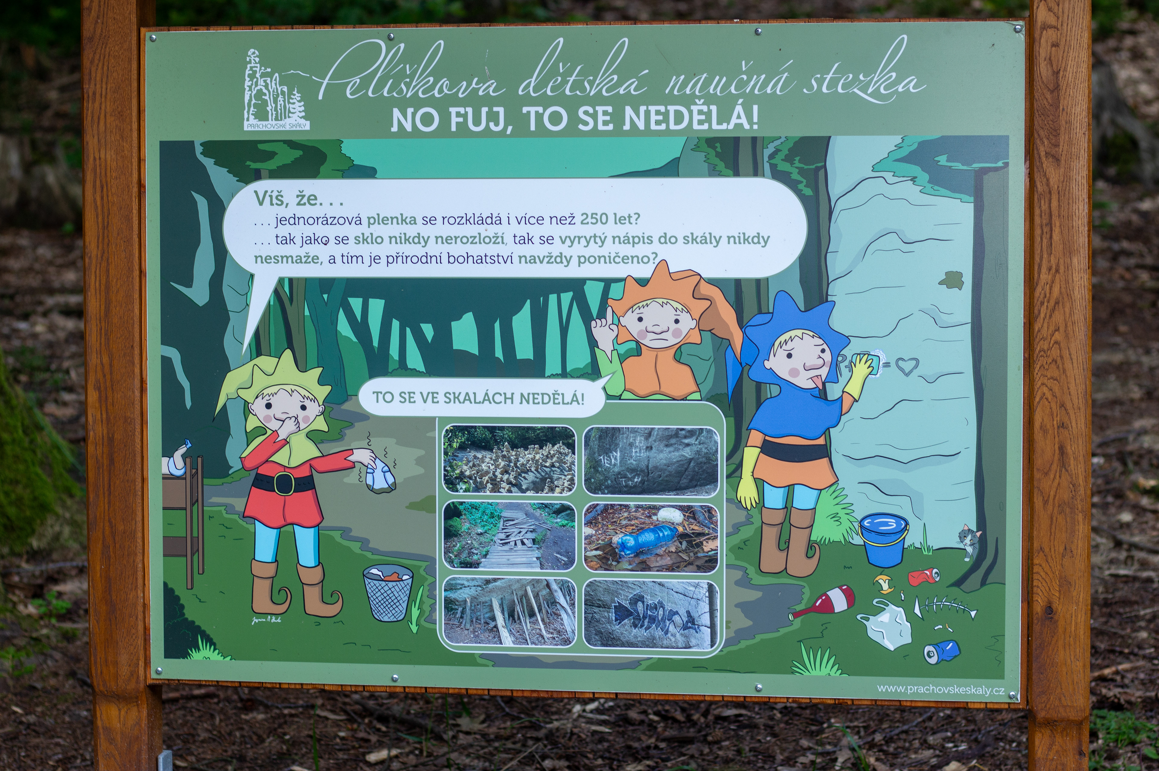 Pelíškova dětská naučná stezka vznikla v rámci projektu v Prachovských skalách. Stezka se odvíjí 1 km okolo rýbníku Pelíšek. Pelíšek je mýtická postava ze skal. Na stezce jsem se podílela celkovou ilustrací a grafickým designem. Jedná se o 10 tabulí. Texty a témata byly dodány Ritou Schlickovou.
